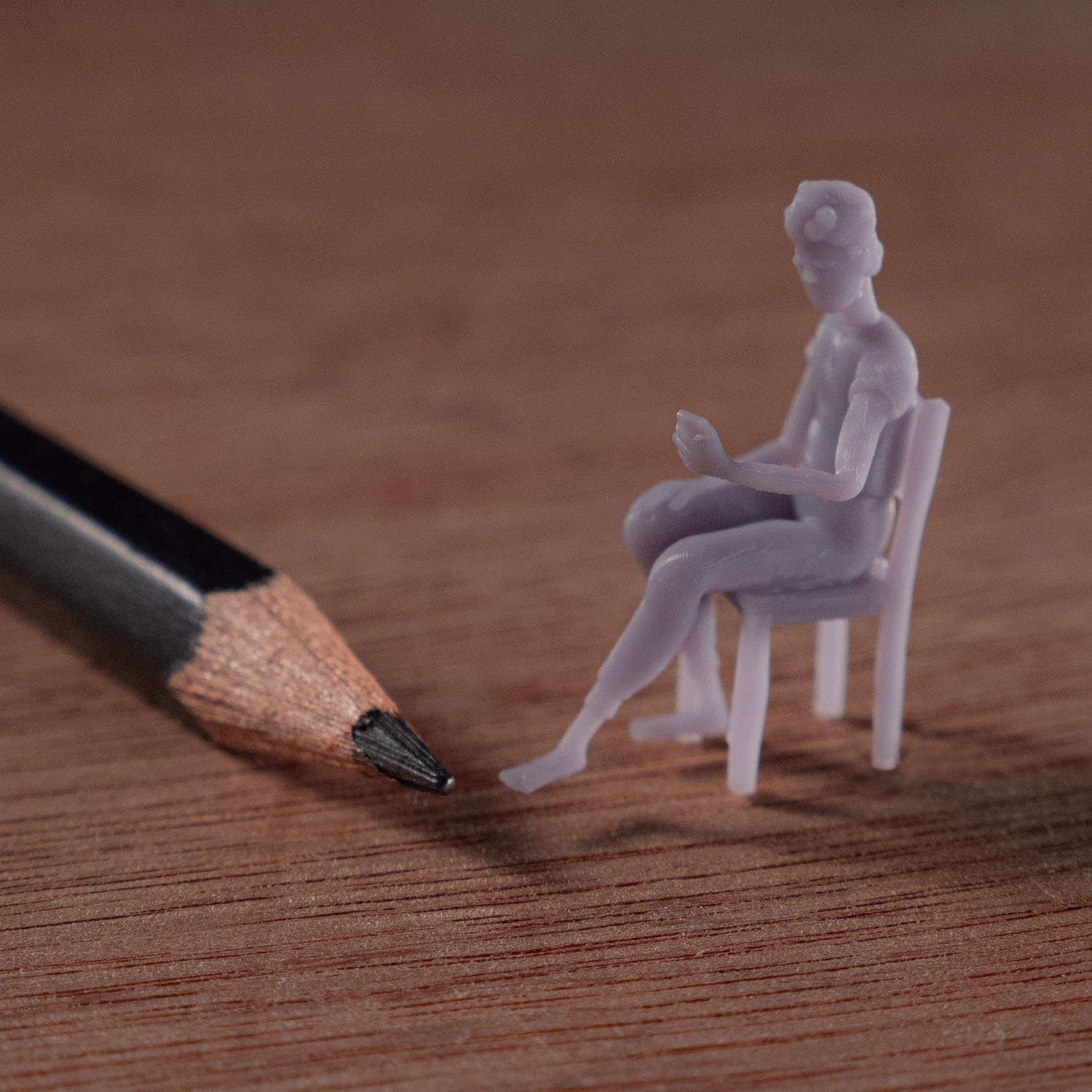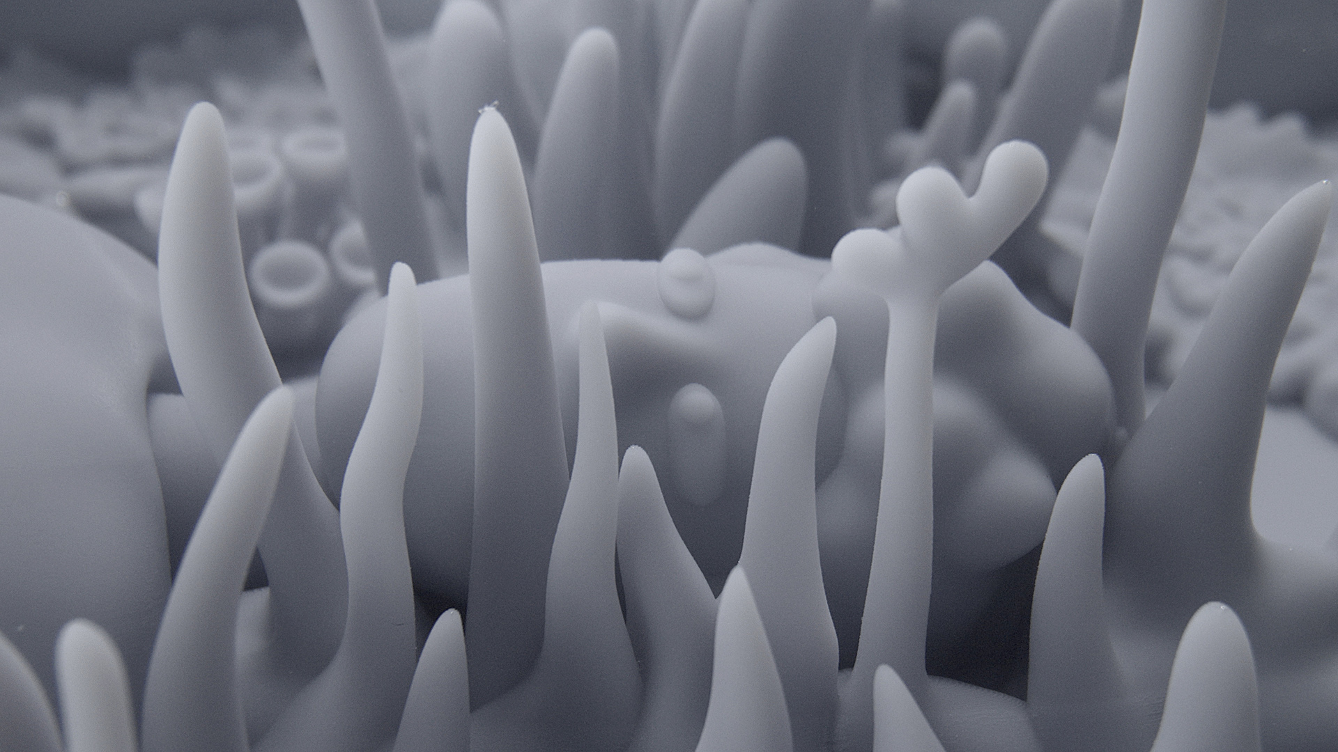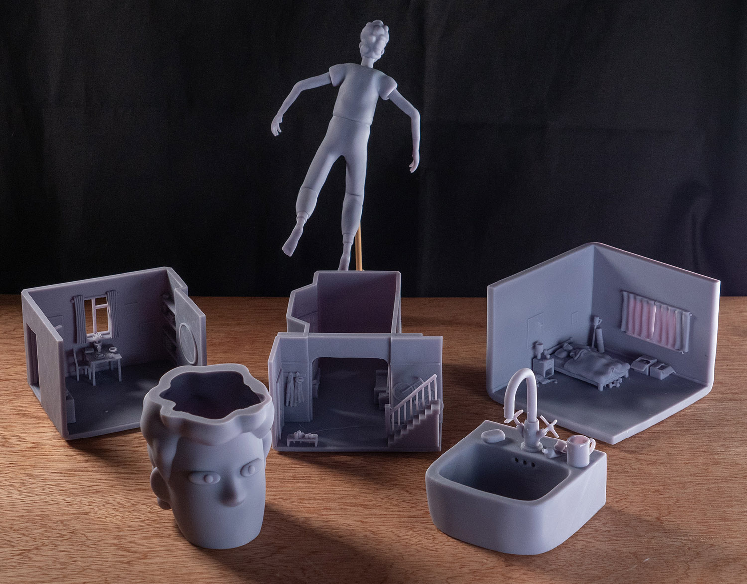 Each miniature set began as a digital sculpture, which was then be 3D printed in resin.