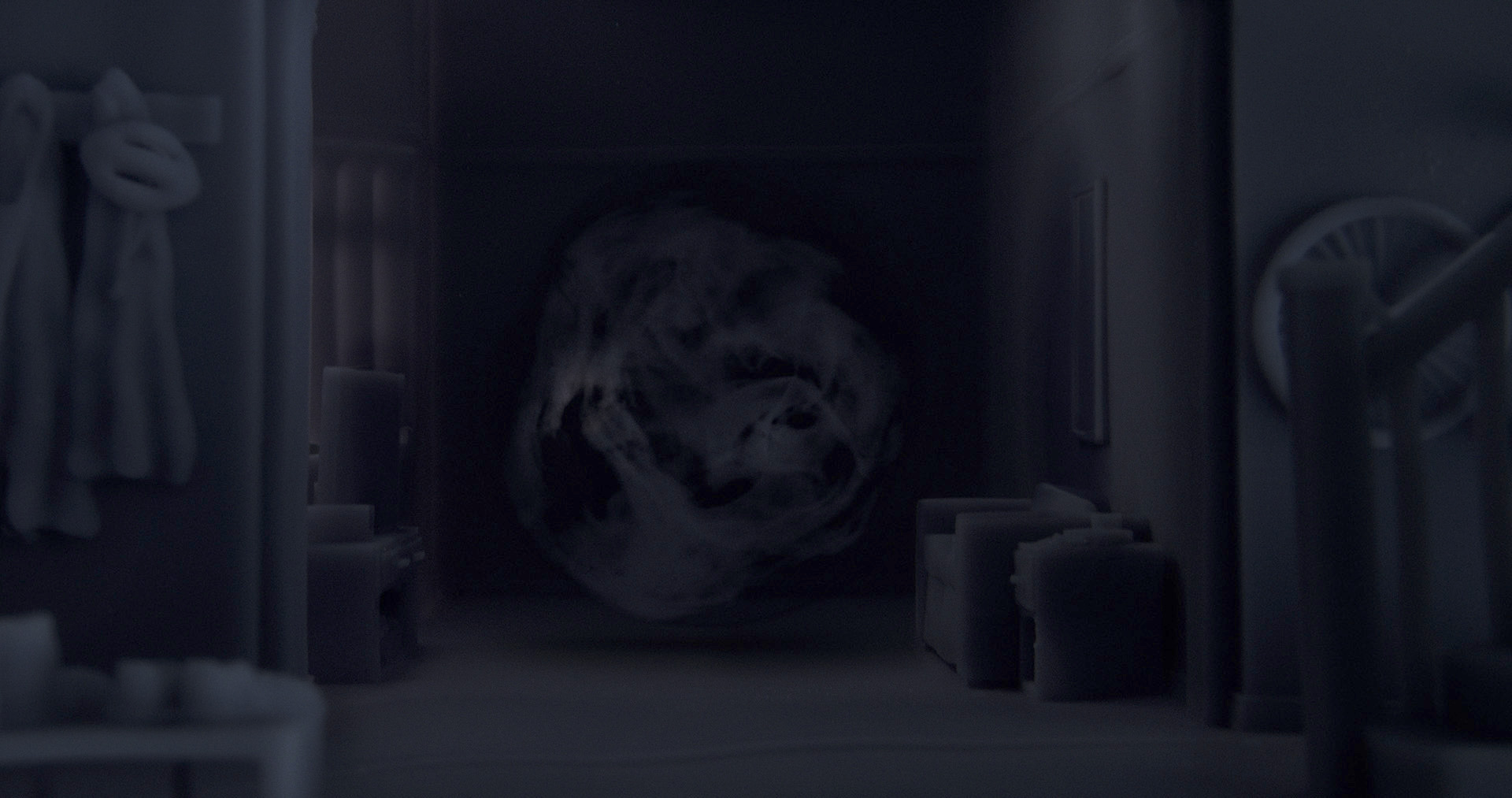 At night the entity appears in Hugo's living room while he lies awake upstairs. Originally this was going to be some kind of ghost or apparition but in the end I went with something more basic that represents either a black hole or more generally, time. The cloud effect sits well with the underwater filming environment and also connects to the creeping cloud that envelops and changes Hugo in the following scene.